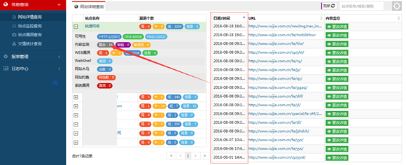 RG-WMS系列网站监控预警平台公有云服务,简称WMS,是尊龙时凯网络专门针对网站频发的安全事件精心研发的一款监控预警产品。