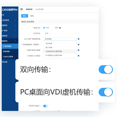 VDI架构数据不落地,采用数据传输、网络隔离等高安全管控策略