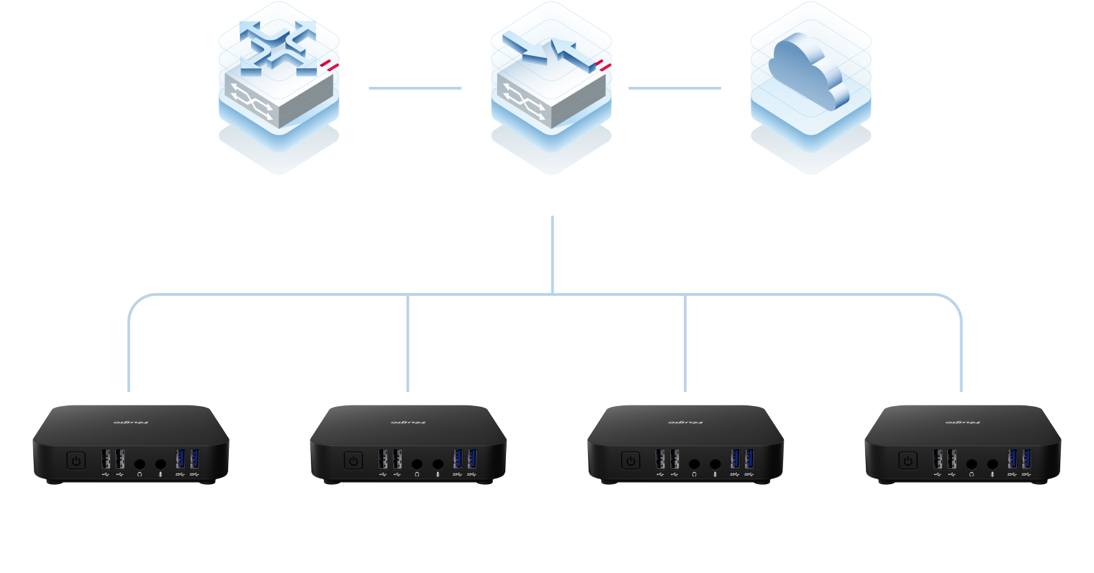VDI授权终端,配合云服务器和RG-CCP云计算平台,可实现千台电脑等TCI终端、IDV终端、VDI终端的云端统一管理