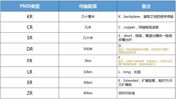 为了满足不同距离的100G互联场景,IEEE 以及MSA定义的100G标准超过十种,但是主流的是下面六种标准。