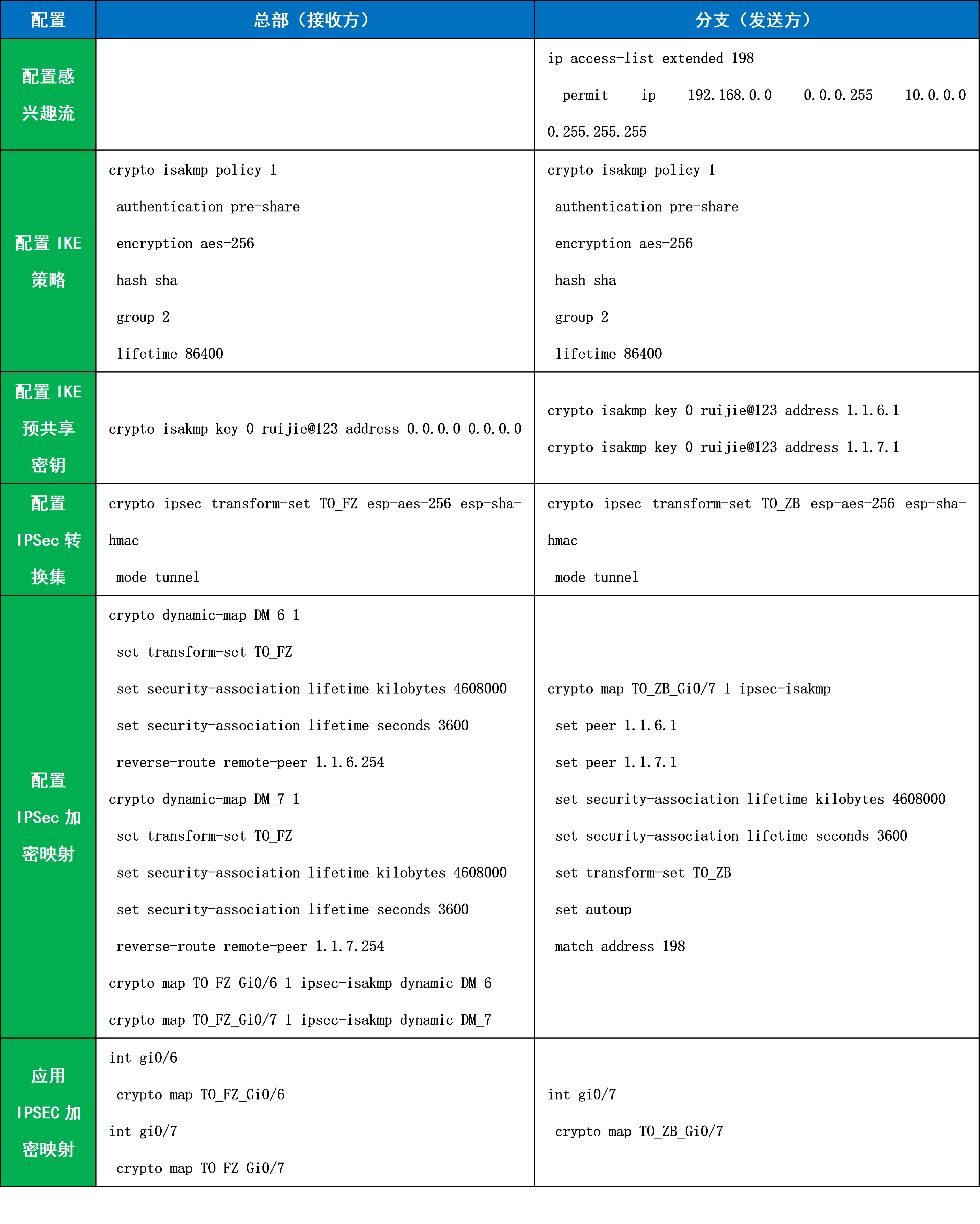 在IPSec网络中只能通过静态路由配置到对端网段的路由,IPSec对等体之间无法使用动态路由协议进行路由学习,反向路由注入可以一定程度上解决感兴趣流网段较多、静态路由维护成本高的问题,如果希望使用动态路由协议进一步降低路由维护成本,可以使用GRE over IPSec VPN或者L2TP over IPSec VPN,使用GRE或者L2TP建立VPN隧道,然后再使用IPSec隧道保护这个VPN隧道,此时既保证了数据安全又可在VPN隧道两端使用动态路由协议。