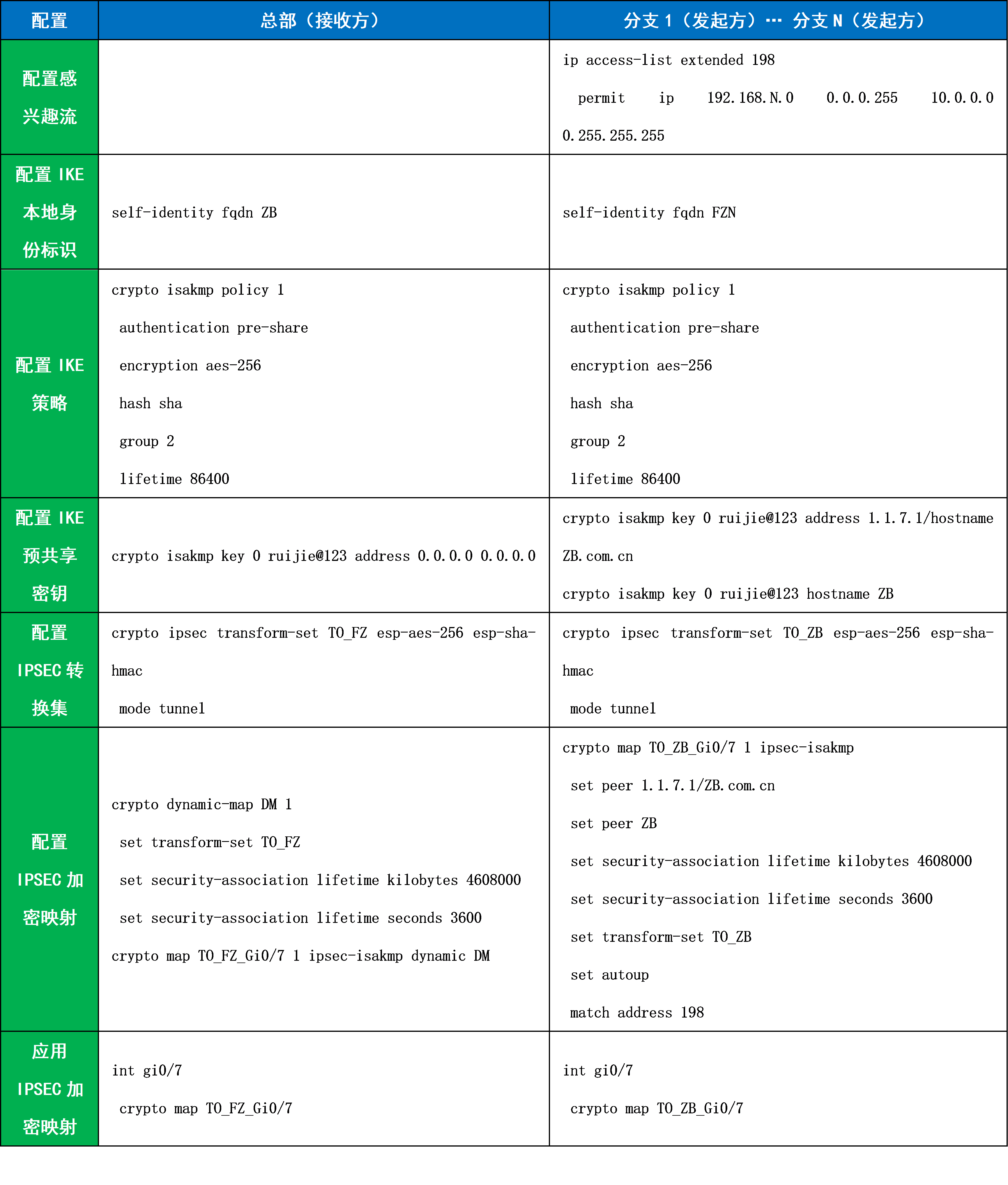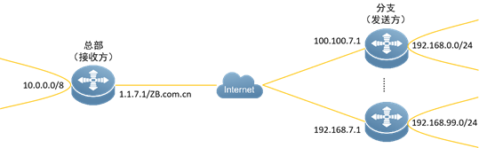 一般情况下,两端设备都有公网IP地址,配置时两端使用静态隧道的方式相互指定对端公网IP地址进行IPSec隧道建立。实际中也会遇到一端有公网IP地址而另一端没有固定公网IP地址或者没有公网IP地址的情况,这种情况两端都使用静态隧道的方式就无法建立IPSec隧道。使用动态隧道配置时无需指定对端IP地址、身份、感兴趣流等,有公网IP地址的一端使用动态隧道可解决另一端没有固定公网IP地址或者没有公网IP地址的问题。此外,如果本端需要建立大量IPSec VPN的对等体也可以使动态隧道,减少配置量。