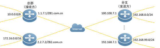 在多总部多分支场景下,除以上两种单出口情况外,多出口的情况也较为常见。部署时将以上两种多总部多分支场景与单总部单分支场景下多出口的情况结合使用即可,本章不在赘述。
