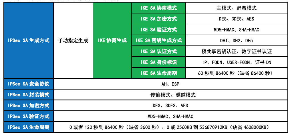 IPSec SA支持使用的加密方式与IKE SA相同,参考本文《IKE SA加密方式》小节。