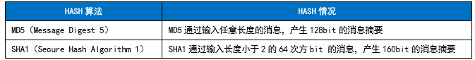 HASH算法实现对报文进行完整性校验,常见的HASH算法有MD5、SHA1等,MD5算法的计算速度比SHA1算法快,而SHA1算法的安全强度比MD5算法高。
