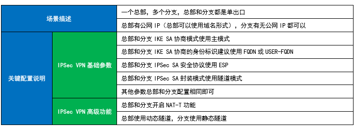 在IKE SA协商中对等体双方需要使用相同类型的身份标识,常用的身份标识类型有4种,IP地址、FQDN、USER-FQDN、证书DN。数字证书认证通常采用证书DN作为本地身份标识。预共享密钥认证默认采用IP地址作为本地身份标识,通常使用采用IP地址作为本地身份标识即可,若遇到以下两种场景推荐手动修改使用FQDN或USER-FQDN:
